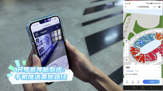 进出场馆,有3D视觉闸机系统可在0.3秒内完成人证核验。寻找座位、洗手间等,手机即便无网络也可以通过蓝牙进入AR导航系统收到最优路径。从进场到落座,无处不在的科技应用实现了全场景智慧化,让人体验感拉满。
